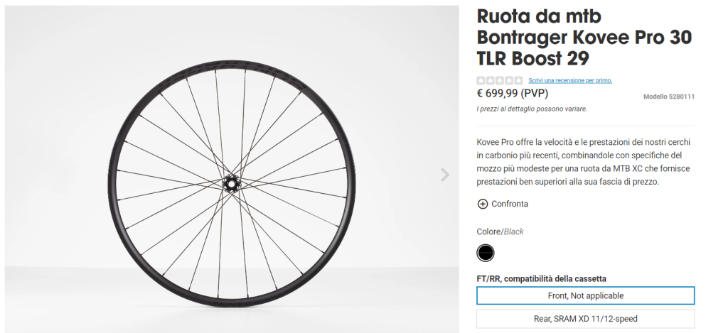 Home » Negozio di biciclette » Ruota da mtb Bontrager Kovee Pro 30 TLR Boost 29
